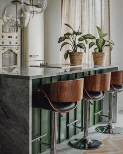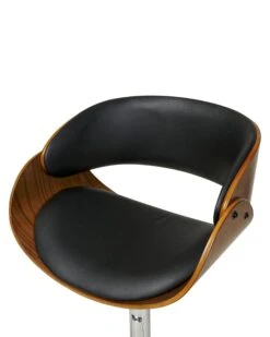 Deze barkruk is voor lange avonden in het beste gezelschap bedoeld. De barkruk heeft een goedgevormde zitting en fijn afgeronde rugleuning. De zithoogte van de barstoel kan worden aangepast naar jouw wensen met behulp van de gaslift. De elegante walnoot look verfraait de barkruk en geeft het, in combinatie met het zwarte kunstleer, een bijzondere uitstraling. Met zijn universele uitstraling kan deze barkruk in zowel moderne als meer traditionele interieurstijlen worden gebruikt.