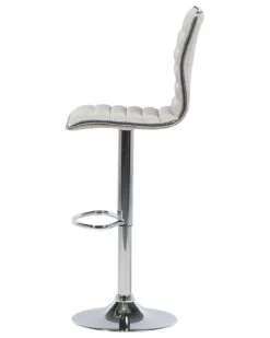 Deze barkrukken zullen je verrassen met elegant gebogen vormen en tijdloos design in combinatie met glanzend chroom en beige polyester. Deze barkrukken van hoogwaardig, onderhoudsvriendelijk materiaal hebben een zeer comfortabele rugleuning. De zithoogte kan worden ingesteld tussen minimaal 58 en maximaal 79 cm. Deze comfortabele barkrukken zijn vrij draaibaar over 360 °, de stevige chromen standaards zijn in hoogte verstelbaar met een gasveer en de brede voetsteunen bieden extra comfort.