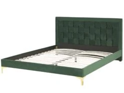 Verander je slaapkamer in een tempel van luxe en vrije tijd met dit stijlvolle bed. Met duurzame, geveerde latten is hij zeer stevig en stabiel, en werkt geweldig voor twee personen. Het bed is gestoffeerd met hoogwaardig fluweel in een donkere tint, voelt zeer zacht aan en is een blikvanger. Een chique hoofdbord zorgt voor ongestoorde en comfortabele leestijd. Rust goed uit met dit bed dat elke ruimte een glamoureuze uitstraling geeft.