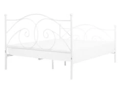 Optimaal slaapcomfort en een charmante, romantische uitstraling zijn kenmerkend voor dit metalen bedframe. Het smeedwerk, zwart geverfd, creëert een golvende constructie van het hoofd- en voeteneinde, rolwerk dat bij veel interieurideeën past. Gebaseerd op vier stabiele poten met decoratieve knoppen, combineert het functionaliteit en stijl.