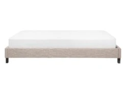 Geniet van een goede nachtrust dankzij dit minimalistische bedframe. Modern, universeel ontwerp maakt het een ideaal complementair stuk voor interieurs in een eigentijdse, Scandinavische en traditionele inrichting. Het frame is bekleed met hoogwaardig polyester linnen en voorzien van houten latten die zorgen voor een gelijkmatige verdeling van het lichaamsgewicht. Het bed heeft geen hoofdeinde, waardoor het ideaal is voor kamers met lage, schuine plafonds.
