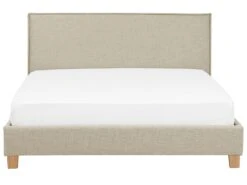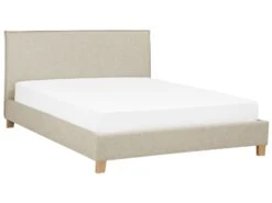 Modern bed met hoog hoofdeinde en stoffering in beige