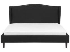Dit bed is bekleed met een duurzame zwarte polyester hoes van hoge kwaliteit. Het comfortabel gestoffeerde hoofdeinde van het bed is geïnspireerd op de stijl van een zijstoel. De versiering met koperkleurige metalen klinknagels aan de bovenkant geeft het hoofdeinde een klassieke, elegante uitstraling.