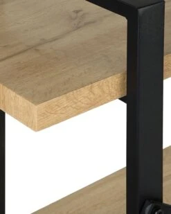 Plaats het rek voor de muur of gebruik hem als praktische scheidingswand in je keuken of woonkamer. In de 3 opslagruimtes is er voldoende ruimte voor je favoriete boeken of decoratieve items. Je thuis-elektronica kan ook binnen handbereik worden opgeborgen. Het robuuste metalen frame in zwart past perfect bij de moderne hout-look van de brede planken en geeft de constructie de nodige stabiliteit.
