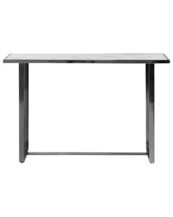 Geef uw interieur allure met deze glamoureuze console. De afwerking met gehard glas en marmer geeft het stuk elegantie. Dankzij de metalen voet is het meubel stabiel en de glanzende afwerking vult het hele ontwerp aan. Plaats het in uw woonkamer, slaapkamer of hal en toon uw favoriete decoraties.
