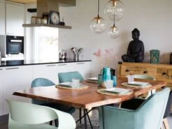 Eetkamerstoel met metalen poten en fluwelen hoes in mintgroen set van 2