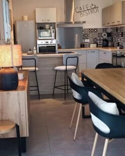 Als je droomt van een moderne eetkamer met een vleugje Scandinavische stijl, dan zijn deze stoelen de juiste keuze. Ze zijn ook geschikt voor een ruime keuken of woonkamer en staan ​​geweldig aan een vierkante tafel en vormen zo een ontbijthoek voor jou en je wederhelft. Het lichaam van sterk plastic maakt de stoel duurzaam en zal lang boeien met zijn grijze kleur, en de metalen poten met een afwerking die hout imiteert verrijken hem met een minimalistisch accent.