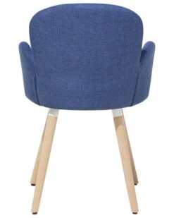 Deze eetkamerstoelen stralen charme uit. Uitstekend zitcomfort wordt gecombineerd met trendy design en hoge kwaliteit. De designstoelen kunnen niet alleen worden gebruikt in de eet- en woonruimtes, maar zijn ook een eersteklas keuze in vergader- en wachtruimtes. Het effectieve uiterlijk in de populaire retrostijl verspreidt eenvoudige elegantie. De donkerblauwe, duurzame en onderhoudsvriendelijke hoes van hoogwaardig polyester past perfect bij het prachtig gebogen ontwerp, de decoratieve dikke stiksels en de vier stevige poten van lichtbruin beukenhout. Een fraai detail is de zichtbare witte rand van het verbindingsdeel van metaal, waaraan de stoelpoten zijn bevestigd.