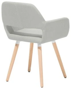 Deze eetkamerstoelen zijn precies de juiste keuze als je eigenlijk liever in comfortabele fauteuils zit. De comfortabele stoffering en armleuningen zorgen voor het best mogelijke zitcomfort. De hoes van de veelzijdige stoelen is gemaakt van hoogwaardig polyester in fijn grijs en is duurzaam en gemakkelijk schoon te maken. Slimme details zijn de zichtbare witte rand van het metalen kruis, waaraan de stoelpoten zijn bevestigd en de opening in de rugleuning.