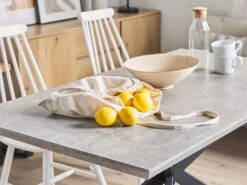 Voeg een decoratief tintje toe aan uw eethoek met deze industrieel geïnspireerde tafel. Het meubel is gemaakt van MDF in warme tinten en past perfect bij elk modern of rustiek interieur. Bovendien biedt het meubel plaats aan maximaal 6 personen, dus ideaal voor zowel een familiediner als een vriendenbijeenkomst.