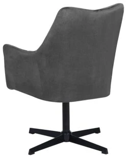 Deze fauteuil combineert een chique uitstraling met gedegen functionaliteit. De fluweelzachte bekleding en de elegante donkergrijze kleur van deze stoel brengen een stukje design in huis. Daarbij heeft de stoel een stevige, 360 graden draaibare, voet waarvan de vormgeving sterk doet denken aan die van een klassieke bureaustoel.