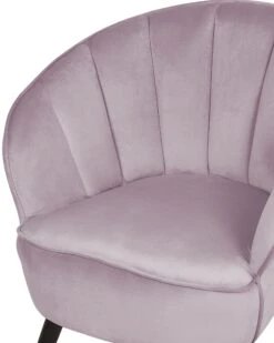Een elegante fauteuil, bekleed met polyester van hoge kwaliteit met fluweelachtige uitstraling. De zachtroze kleur maakt het een aantrekkelijke en comfortabele aanvulling op jouw woonkamer of slaapkamer.