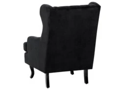Deze salonfauteuil is moeilijk te verslaan op het gebied van comfort en nodigt je uit om te ontspannen! Deze gezellige fauteuil maakt indruk met zijn zithoogte en zijn licht hellende rugleuning. De gebogen en donkere houten poten en de lange rugleuning geven de zwarte salonfauteuil iets koninklijks. De knoopversieringen op de rug maken het elegante ontwerp van de stoffen stoel compleet.