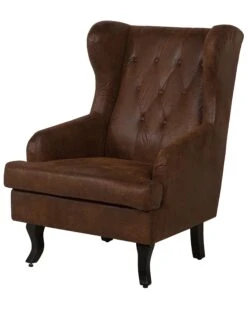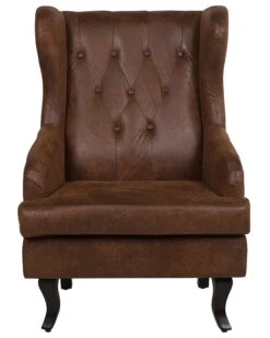 De elegant gevormde, zwarte poten van deze prachtige fauteuil zijn gemaakt van hoogwaardig rubberhout. De combinatie van bruin kunstleer en de vorm geven de fauteuil een klassieke look. De fauteuil geeft elke kamer een gezellige en uiterst huiselijke sfeer. Elke stoel is uniek, er kunnen hierdoor kleine kleurverschillen optreden.