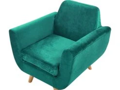 Prachtig afgerond en uiterst comfortabel, deze fauteuil wordt jouw favoriete relaxplek in de woonkamer. De stoel is uitgerust met dikke zitkussens en een licht hellende rugleuning die doorloopt in gebogen armleuningen. Dit meubelstuk is de perfecte combinatie van stijl en comfort. De subtiele gloed van de fluwelen bekleding benadrukt de lichte tint van de schuine houten poten, waardoor de bank er modern uitziet en tegelijkertijd een vleugje retrostijl in het interieur brengt. Maak je woonkamer compleet en haal een twee- of driezitsbank uit dezelfde collectie in huis. Geef je interieur een andere uitstraling door deze fauteuil een nieuwe hoes uit ons aanbod te geven