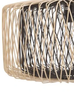 De twee lagen van de lampenkap zijn gemaakt van zwart metaal en natuurlijk rotan en geven deze lamp een indrukwekkende, gezellige uitstraling. Het ideale verlichtingsaccessoire voor woonkamers en slaapkamers in boho-stijl. Omdat het product handgemaakt is, is elk model een unieke blikvanger.