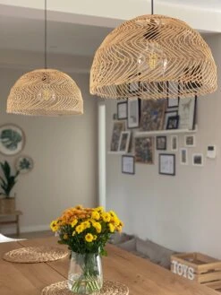 Onconventioneel en natuurlijk, deze unieke, lichtbruine hanglamp heeft een verfijnde structuur die een fascinerend spel van licht en schaduw creëert. De solide verwerking van hoogwaardige rotan weerspiegelt een koloniale en tegelijkertijd rustieke stijl.
