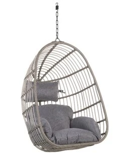 Een stabiel stalen frame gecombineerd met een prachtige gevlochten mand in een kleur die in elk interieur past en een feel-good karakter aan de ruimte geeft. Dankzij het sterke ketting-ophangsysteem kun je heerlijk heen en weer schommelen. De charmante boho-look van dit model en de zachte, waterbestendige kussens zorgen voor een onbezorgd gevoel, zodat het verblijf op de veranda, het balkon of in de slaapkamer een heerlijk avontuur wordt.
