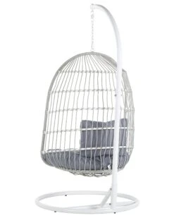 Het opvallende ontwerp van deze hangstoel van robuust polyrotan zorgt voor een romantisch en zorgeloos vakantiegevoel op de veranda of in de slaapkamer. De gevlochten stoel is opgehangen aan een zware metalen ketting, die op zijn beurt is bevestigd aan een zeer stabiel stalen frame. Zo biedt de stoel rustgevende, subtiele schommelingen en laat je zweven op het comfortabele, waterbestendige zitkussen, zoals op een wolk in de lucht.