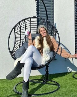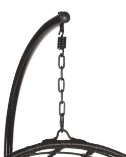 Ronde rotan hangstoel in stevig zwart metalen frame inclusief kussen.