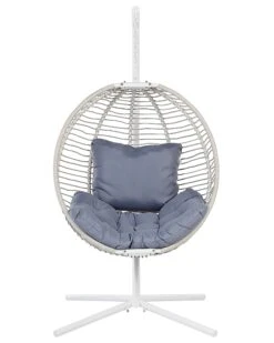 Deze hangende eierstoel biedt dankzij de zachte schommelbeweging een comfortabele plek voor iedereen die wat vrije tijd nodig heeft. De stevige standaard is gemaakt van robuust metaal dat de stabiliteit van het stuk en de lange levensduur garandeert. De zitting is geweven met polyesterdraad en zorgt in combinatie met het meegeleverde donzige zitkussen voor een gevoel van gezelligheid. Bovendien heeft dit meubel, dankzij de toepassing van een thermische spuitafwerking, een weerstand waardoor het niet alleen binnen maar ook buiten kan worden gebruikt.