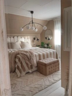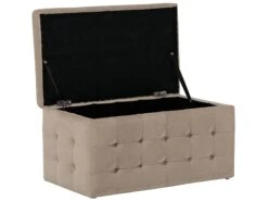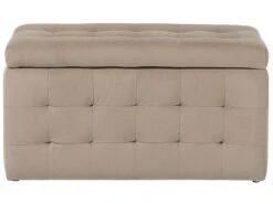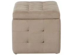 Deze hocker zal je overtuigen met zijn uitstraling en functionaliteit. Hij kan op vele manieren worden gebruikt: als poef, extra zitplaats, een voetenbank of accessoire waar je ook veel in kunt opbergen. De stevige constructie gemaakt van hout is bedekt met lichtbruine stof en daarom veelzijdig en zeer comfortabel tegelijkertijd.