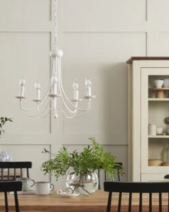Geniet van elke maaltijd met uw familie en vrienden in een goed verlichte eetzaal met een echte retro-feel. Deze kroonluchter is gemaakt van hoogwaardig materiaal met een geverfde, matte afwerking voor de luxe uitstraling. De armen van de lamp zijn versierd met bijzondere metalen elementen. Bovendien imiteren de fittingen voor de gloeilampen de smeltende was van een brandende kaars.