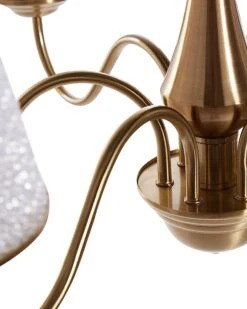 De zes gebogen armen van de elegante kroonluchter zijn voorzien 6 lampenkappen, gemaakt van hoogwaardig acryl. Het verchroomde metaal vormt een mooi contrast met de delicate lampenkappen en geeft de kroonluchter een luxe uitstraling. De klassiek ogende kettingophanging versterkt de vintage uitstraling van deze fantastisch mooie lamp.