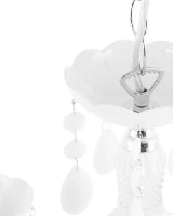 Qua sierlijkheid is deze betoverende kroonluchter moeilijk te verslaan. De zes gebogen lichtarmen van wit plastic zijn uitgerust met sprankelende kristallen elementen, die mooie lichteffecten bieden. Zonnestralen en kaarslicht worden weerspiegeld in de decoratieve elementen en omhullen de kamer in warm licht. Een hoogtepunt voor alle klassieke en elegante interieurs. De lamp is voorzien van een transparante kabel en robuuste kettingophanging.