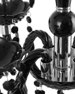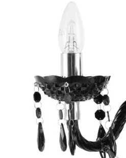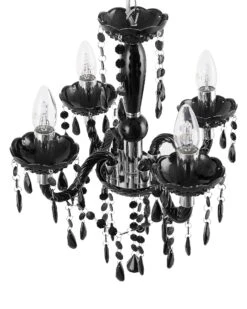 Qua sierlijkheid is deze betoverende kroonluchter moeilijk te verslaan. De vier gebogen lichtarmen van zwart plastic zijn uitgerust met sprankelende kristallen elementen, die mooie lichteffecten bieden. Zonnestralen en kaarslicht worden weerspiegeld in de decoratieve elementen en omhullen de kamer in warm licht. Een hoogtepunt voor alle klassieke en elegante interieurs. De lamp is voorzien van een transparante kabel en robuuste kettingophanging.