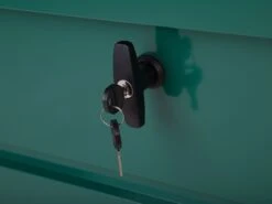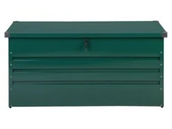 In deze robuuste stalen kist vind je voldoende ruimte voor al je tuin-, sport- of kampeergerei. De stevige, gladde deksel kan worden gesloten met behulp van het cilinderslot van de draaigreep en kan gemakkelijk worden geopend dankzij een gasveer.