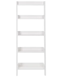 Deze wandkast verrast door zijn bijzondere vormgeving, praktische opbergruimte en elegant design. De kast oogt als een ladder, waarbij de diepe treden plaats bieden aan boeken en tijdschriften, woonaccessoires of huishoudelijke producten. Het is een charmante boekenkast die je vanwege de verfijnde afwerking ook als decoratief meubelstuk in huis kunt plaatsen. De witte tint geeft de duurzame kast een nette uitstraling. De vijf planken hebben aan de zijkanten en achterzijde opstaande randen. Ze bieden voldoende ruimte voor boeken, foto’s of decoratieve stukken. De ladderkast is eenvoudig schoon te maken. De boekenkast is een sieraad in je huis en biedt functionele opslagruimte voor elke kamer.