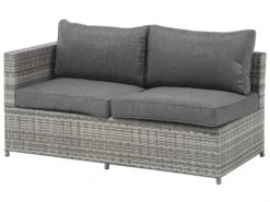 De ideale zitplaats voor lange, warme zomerdagen en -nachten. De grote hoekbank gemaakt van onderhoudsvriendelijke, weerbestendige polyrattan in elegante grijstinten overtuigt door zijn elegante uiterlijk en hoogwaardige afwerking. De comfortabele zit- en rugkussens hebben een dikke schuimvulling. De praktische loungetafel met robuust tafelblad van veiligheidsglas biedt voldoende ruimte voor het opbergen van drankjes.