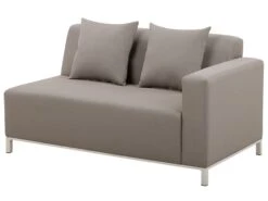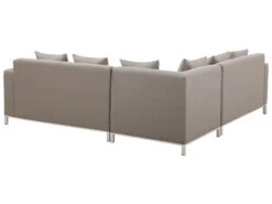 Upgrade je buitenruimte met deze prachtige lounge tuinmeubel-set in beige. De hoekbank biedt ruimte aan 5 personen en vanwege de modulariteit kan de set worden samengesteld zoals jij dat wilt. Dankzij het moderne, minimalistische ontwerp past de lounge-set in verschillende tuin-decorstijlen. De set wordt geleverd met bijpassende kussens en een salontafel gemaakt van gepoeder-coat aluminium in crème-wit. De zittingen, leuningen en kussens zijn vervaardigd van slijtvast en weerbestendig polyester en gevuld met sneldrogende vulling.