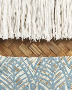 Deze boho-mand zal zeker opvallen in je interieur. Het stuk is handgemaakt van natuurlijk bamboehout, waardoor het zeer decoratief is, vooral dankzij het blauwe abstracte motief en de witte katoenen kwastjes. De mand is ook gemakkelijk te verplaatsen, omdat het licht van gewicht is en handvatten heeft. Binnenin kun je extra plaids of dekens voor je woonkamer opbergen.