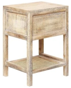 Dit nachtkastje is niet alleen een handig opbergmeubel voor je slaapkamer, maar zal ook zijn look verheffen en een frisse, boho-vibe brengen. Het stuk is gemaakt van hoogwaardig paulowniahout en heeft ook een natuurlijk rotanweefsel aan de voorkant, wat zeker de aandacht zal trekken. Het meubel heeft een lade, die kan worden gebruikt om verschillende kleine spullen in op te bergen, en een plank, waar je boeken of decoraties kunt plaatsen.