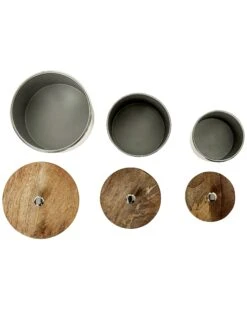 Deze praktische en decoratieve set van drie opbergbakjes is perfect om al uw kleine accessoires en toiletartikelen te bewaren. Het past perfect bij industriële en minimalistische stijlen dankzij zijn fraaie finish. De opbergbakjes zijn voorzien van houten deksels die een natuurlijk accent toevoegen voor een prachtige uitstraling.