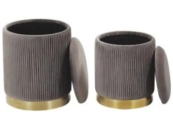 Grijze, fluwelen poef met opslagruimte