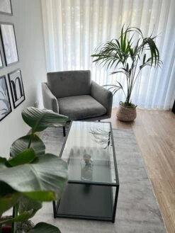 Verfraai uw interieur met deze minimalistische maar elegante salontafel. Dankzij het tafelblad van gehard glas en het model is dit meubel stevig en duurzaam. Plaats het in een woonkamer of thuiskantoor om een mooie decoratieve toets toe te voegen terwijl deze volledig functioneel blijft.