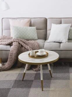 Deze salontafel is een elegant element dat in elk interieur een mid-century charme en stijl toevoegt. Het blad van duurzaam MDF wordt perfect aangevuld door het driepotige metalen voetstuk. Dankzij de tijdloze stijl geeft de tafel een luxe look aan verschillende interieurstijlen, van minimalistisch tot glam.