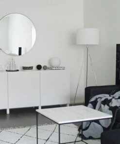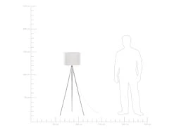 Met zijn moderne design en klassieke elegantie past deze stijlvolle, driepotige staande lamp discreet in elke woonomgeving. De ronde lampenkap van wit polyester rust op een stevig frame van slanke, chroomkleurige poten.