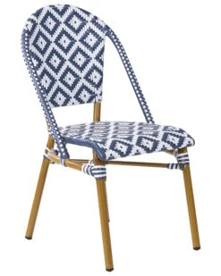 Met een opvallend geometrisch weefsel is deze set van vier stoelen een prachtige aanvulling op elk terras, balkon of eetkamer. De tuinstoelen zijn gemaakt van aluminium en imitatie rotan. Daarom zijn deze stoelen perfect voor zowel binnen als buiten. Door de stapelfunctie zijn de tuinstoelen ideaal voor kleine tuinen of kleine ruimtes. Combineer ze met een tafel uit dezelfde collectie om een ​​gezellige zonnige plek te creëren waar je altijd heerlijk kunt ontspannen.