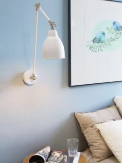 Deze moderne, metalen wandlamp in wit overtuigt niet alleen met een mooi design, maar vooral met praktische functionaliteit. De lamparm bestaat uit een lang en kort deel en is flexibel verstelbaar. Met drie stevige scharnieren, die met opvallende vleugelschroeven kunnen worden bevestigd, kun je elke gewenste richting en hoogte instellen. De gebogen, ronde lampenkop lijkt precies te zijn waar je helder licht nodig hebt.