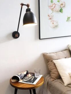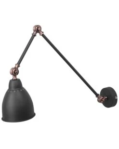 Deze moderne, metalen wandlamp in zwart overtuigt niet alleen met een mooi design, maar vooral met praktische functionaliteit. De lamparm bestaat uit een lang en kort deel en is flexibel verstelbaar. Met drie stevige scharnieren, die met opvallende vleugelschroeven kunnen worden bevestigd, kun je elke gewenste richting en hoogte instellen. De gebogen, ronde lampenkop lijkt precies te zijn waar je helder licht nodig hebt.