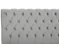 Stijlvol, fluwelen bed in klassiek lichtgrijs